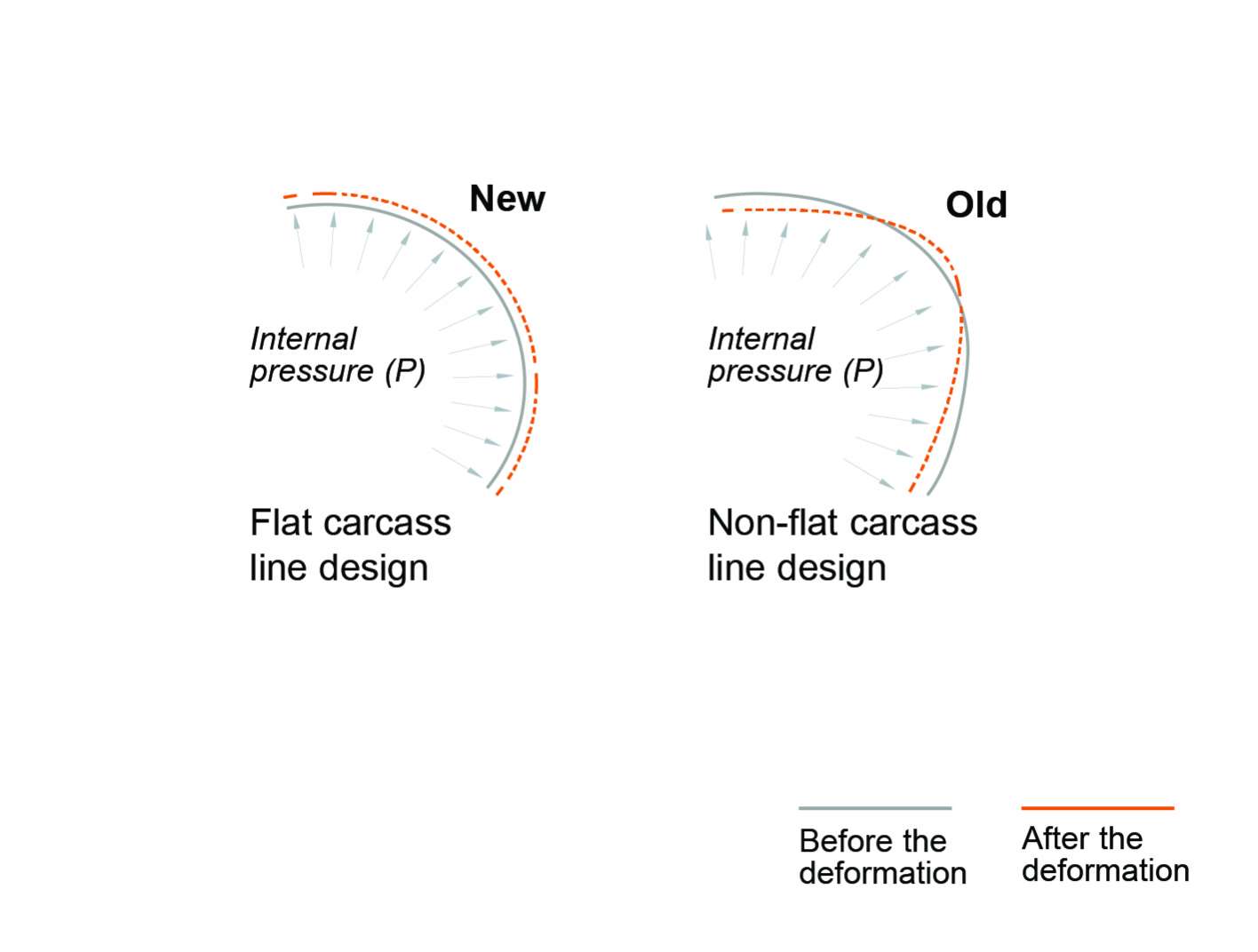 La línea de carcasa plana mantiene la dispersión uniforme de la fuerza interna.