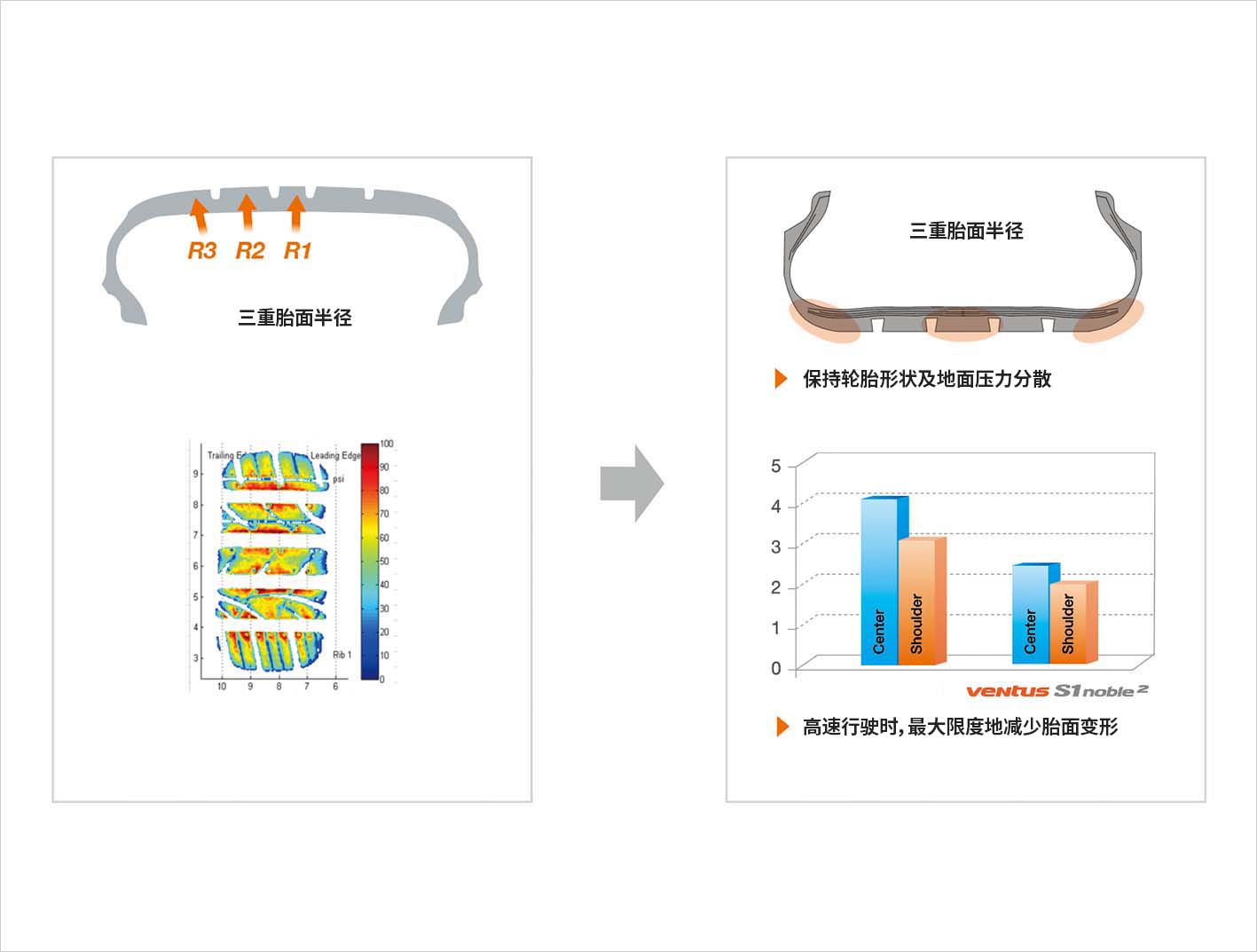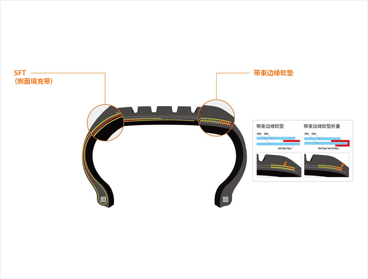 SCCT技术旨在减少断面的变形。如果胎体断面无法保持恒定,胎体内力集中于某一个特殊点上(带束层或胎体反包边缘)。而SCCT技术可以通过控制内力的分散,提高胎面的耐久性。韩泰轮胎正是采用SCCT这一技术,通过平衡最佳强度和接触形状来研发轮胎,从而提高了轮胎的驾驶性、安全性、转弯性、制动性和耐久性。