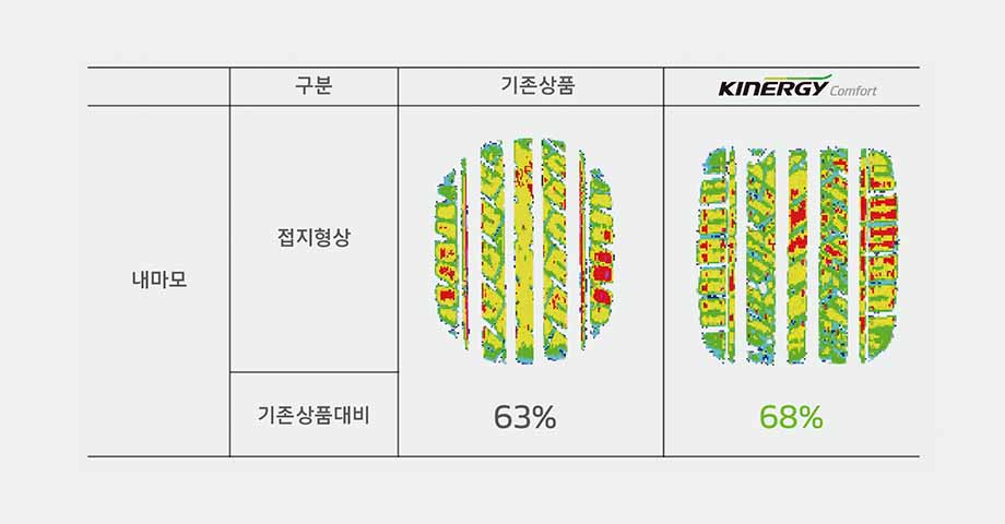 均等に分散された圧力と正方形のプロファイルにより、タイヤの異常摩耗を抑制します(従来品比較時).